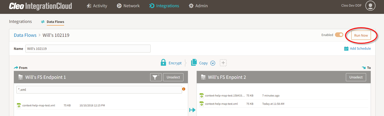 In cases where the source endpoint is File System, FTP or SFTP, you can run a data flow manually.